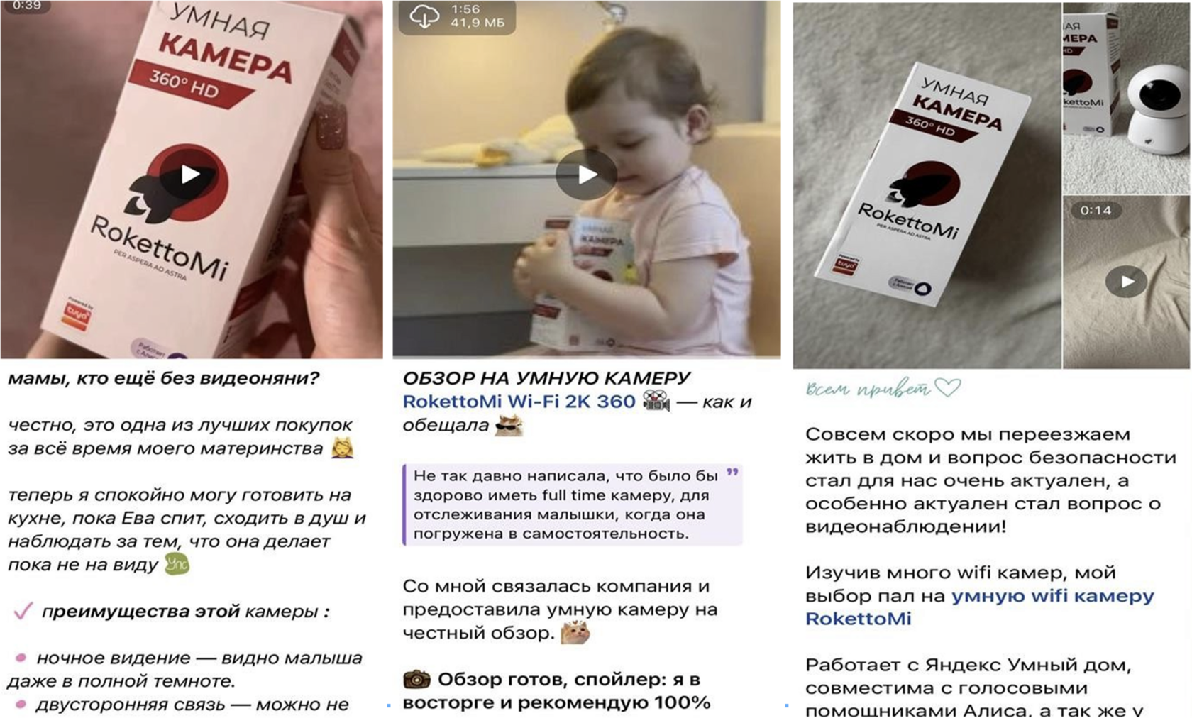 При этом мы получили не просто рекламные интеграции, а живые, эмоциональные обзоры, где блогеры искренне делились инсайтами: как камера помогла им вернуть личное время и перестать волноваться за малыша. Эта честная оптика бесценна — она сформировала доверие к продукту на старте.
