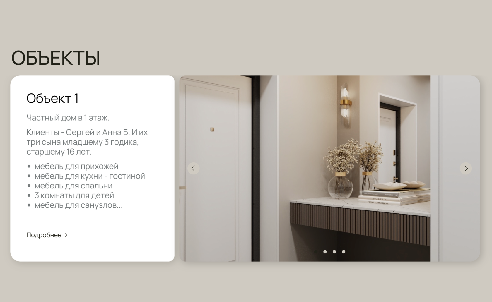 На сайте мы упаковали несколько объектов в формате кейсов.