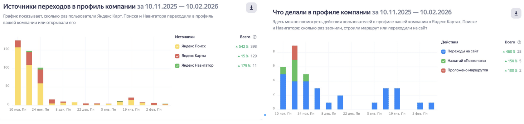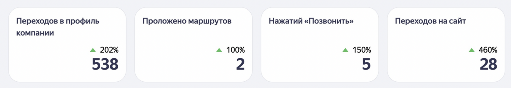 - Повысилась конверсия запросов в звонки и обращения через карты.