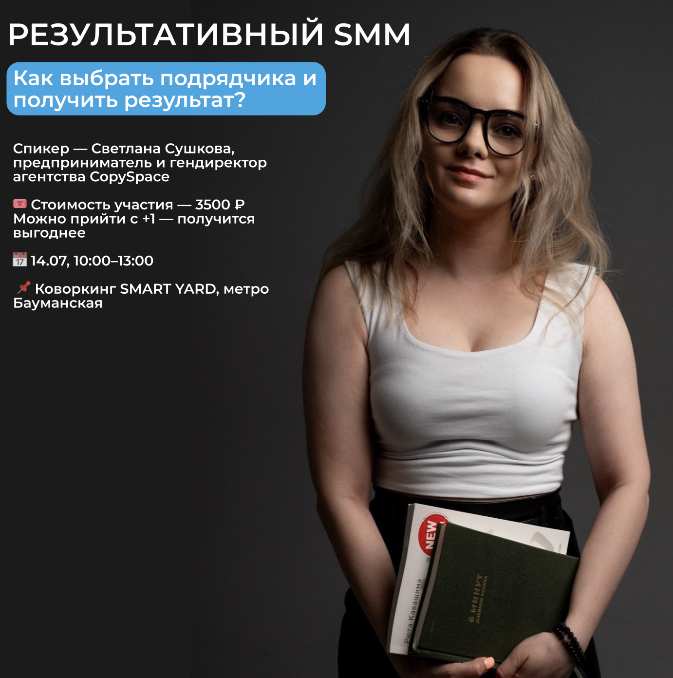 Спикер — Светлана Сушкова, предприниматель и гендиректор агентства CopySpace.